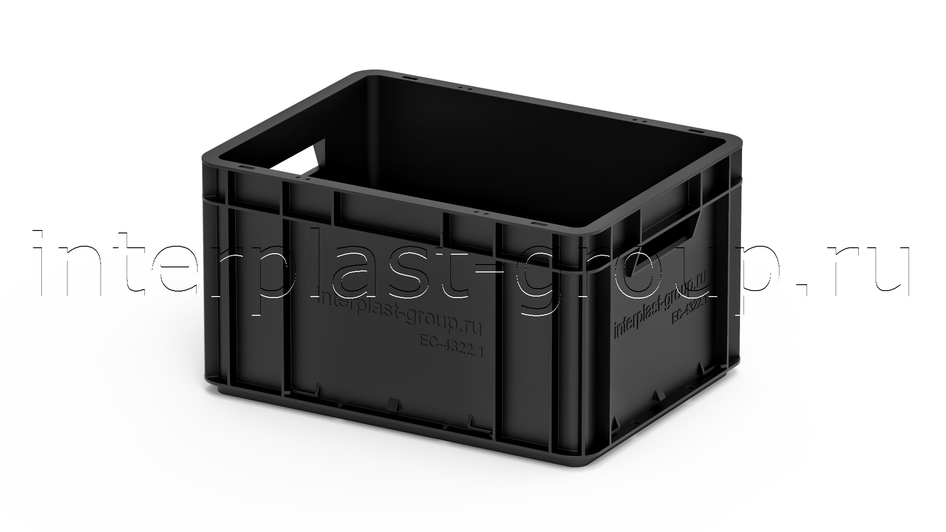 Евроконтейнер открытые ручки/сплошное дно (черный), 400x300x220 мм