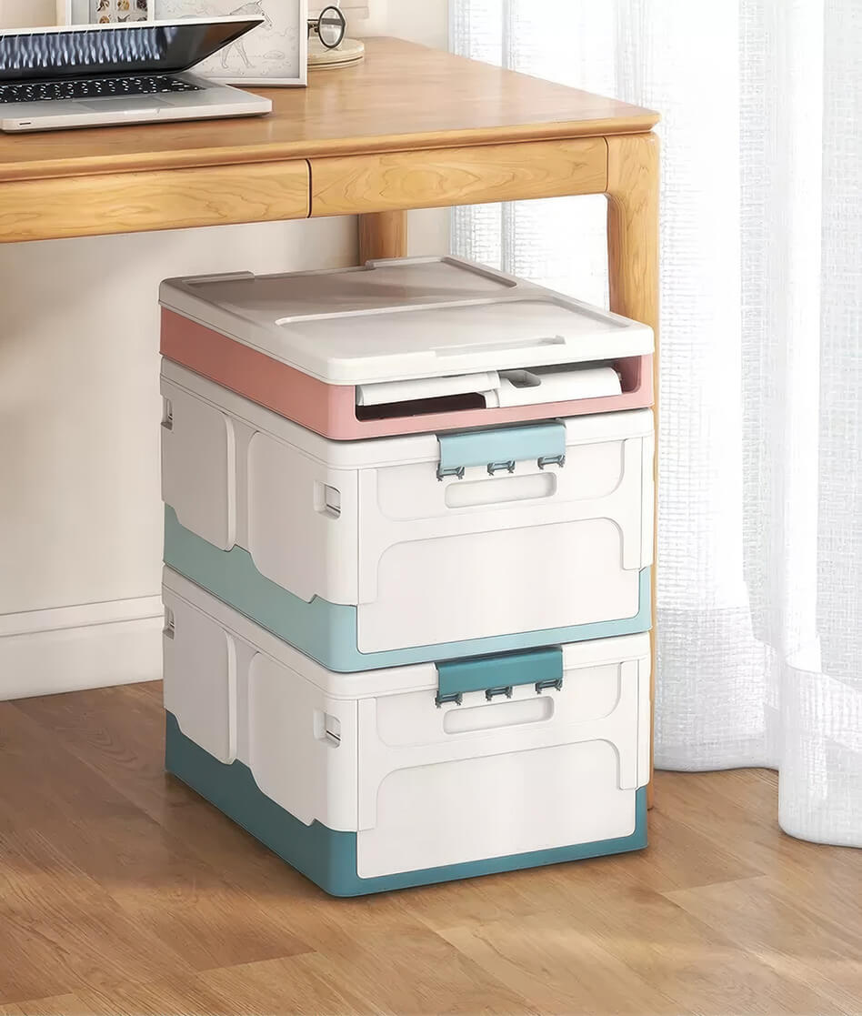 Этот пластиковый складной ящик сочетает в себе прочность, функциональность и современный дизайн. Белые стенки придают ощущение чистоты и простора, а синее дно добавляет глубины и элегантности, создавая гармоничное сочетание. Пластиковый контейнер идеально подходит для хранения одежды, игрушек, документов, мелочей и бытовых принадлежностей.